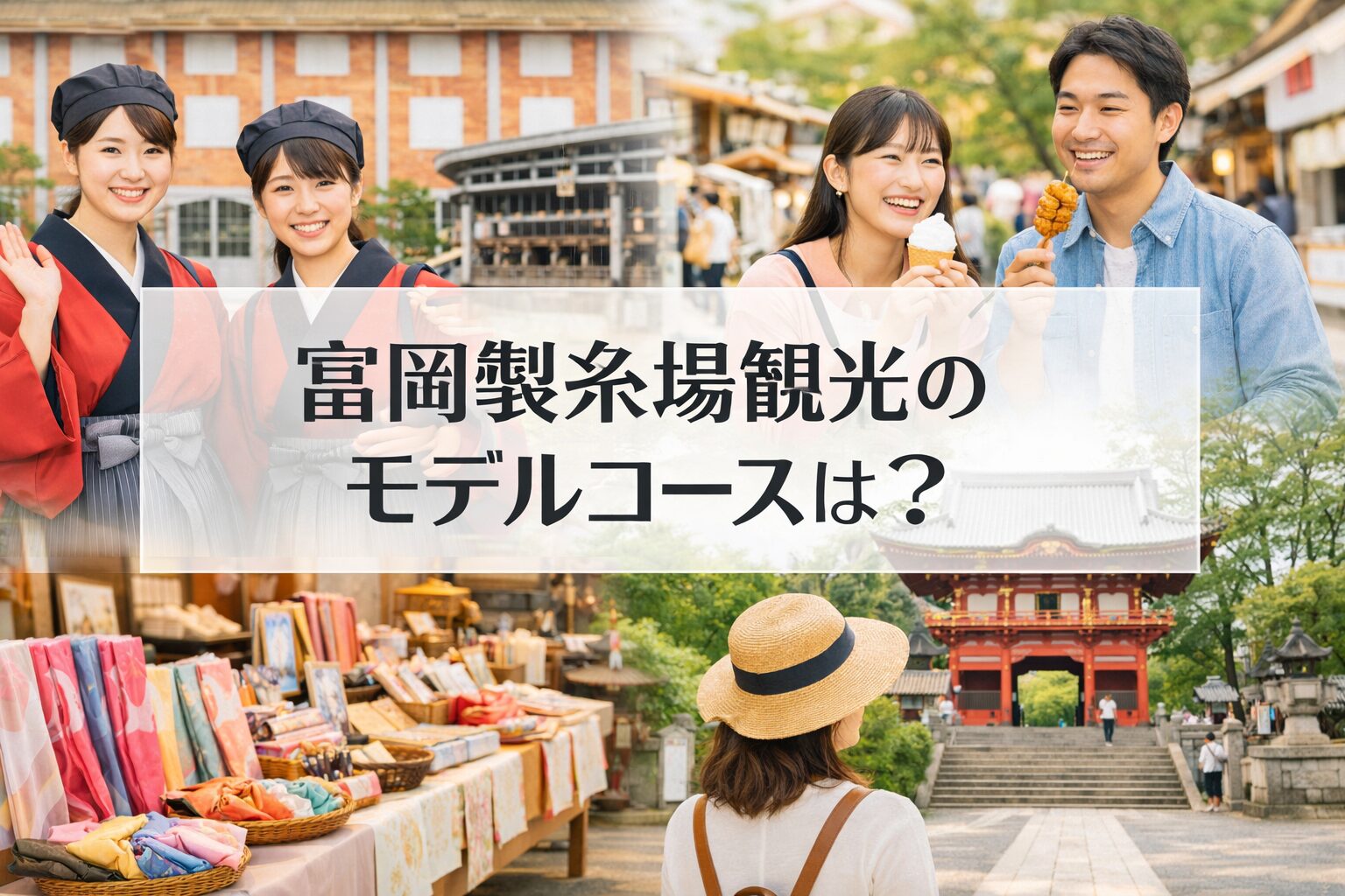 富岡製糸場観光モデルコースは、世界遺産の見学だけでなく、富岡製糸場周辺スポットや富岡グルメ、富岡シルクまで満喫できる完成度の高い観光プランです。日帰りでも充実し、女子旅や家族旅行にも向いています。